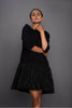Round neck relaxed fit dress with sequence gathered bottom and back zip