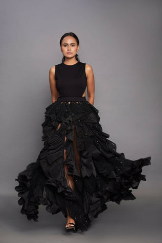 FABRIC DETAILS : Top Ponte Roma and bottom sequenced net