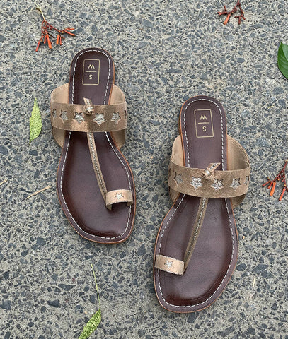 Simple, sophisticated and fun, the Tina sandal is handcrafted from rose gold and silver genuine metallic leather using the punch-out technique on a pure leather base. Butter-soft cushioning and an anti-slip sole make these ladies sandals worth an online buy!