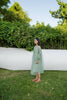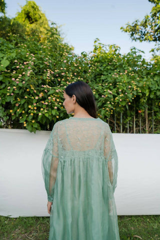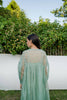 Hand embroidered kurta/dress with gathers and scalloped hem along with spaghetti lining.
