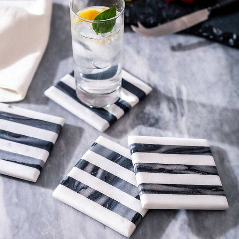 Clean lines for a hygge appeal. Ethically sourced and sustainably hewn, these stunning coasters made from natural black and white marble, work well with the modern, minimal aesthetic. Natural stone varies in size, color, and appearance. Each piece is one-of-a-kind; size, shape, and color may vary slightly.