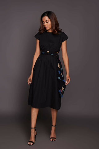FEATURES : Backless Dress with colour confetti belt
