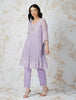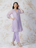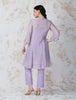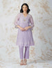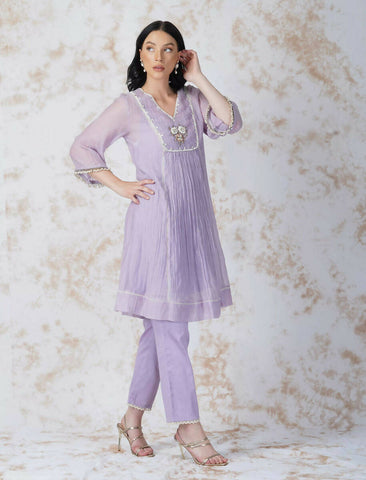 Beadwork and crystal buta on the yoke, this paneled tunic is paired with elasticated waist pants and comes with a rayon slip.
