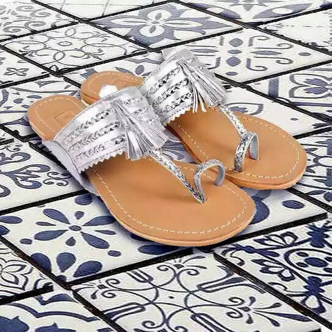 The Chandni kolhapuri chappals are completely handmade from pure leather, the upper being metallic leather. Butter-soft cushioning makes her extremely comfortable! Buy her online at an attractive price now!