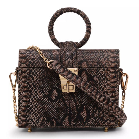 Add a stylish touch to your outfit with this Snake Print Grey Leather bag.