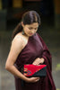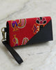 Made from Vegan Leather and Gamthi Rabari embroidery, the Eila Wristlet symbolises cosmic balance in its bold, yet delicate design divided by an axis of red and black hues.