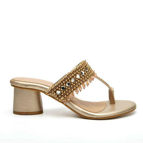Gold Faux Leather Kolhapuri Heels