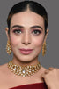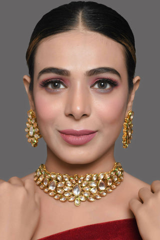 This enchanting necklace comes with an adjustable thread and is skilfully embedded with attractive kundan stones paired with matching earrings. Charm your festive outfit with this magnificent necklace set.