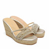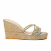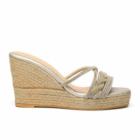 Featuring a gold wedges in velvet base with swarovski detailing. It has a faux leather underlining, gel cushioning and 3.5 inch heels.