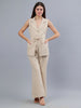 Introducing our Beige Co-ord Set, where timeless elegance meets playful sophistication. Crafted from luxurious banana crepe fabric, this set features a tailored blazer with a unique rope detail, perfect for knotting at the waist.