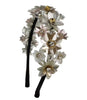 Featuring a Stunning woven hairband with Silver metal sequins, crystals and Pearls floral work embellishment