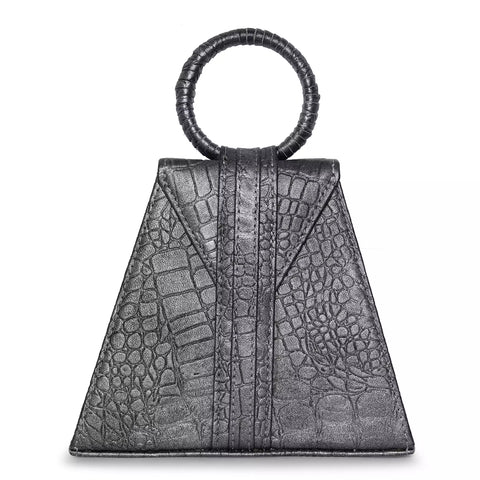 Add a stylish touch to your outfit with this Triangle shape Black Leather bag.