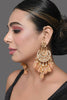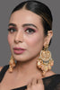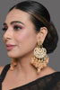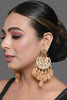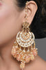 Kundan inspired pearl detailed chandbali with semiprecious peach tanjore beads set in mixed metal