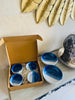 A pudding set that is blue and white is a type of kitchenware designed specifically for making and serving pudding. It usually includes a pudding basin, which is a type of ceramic used for steaming and setting puddings, and sometimes includes accompanying utensils such as a mixing spoon or a serving dish.