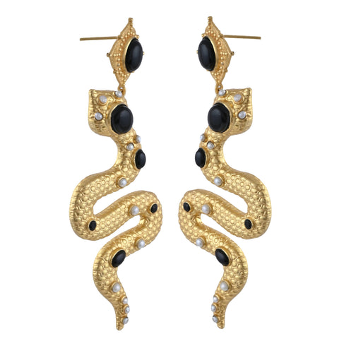 Handcrafted, gold-plated brass with Black onyx and freshwater pearls
