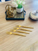 A set of 4 forks with plain long handles in gold is a simple and elegant addition to any dining table. The gold color adds a touch of luxury and sophistication to the forks, while the plain design creates a sleek and modern look. These forks are versatile and can be used for a variety of occasions, from casual family dinners to more formal events. The long handles provide a comfortable grip and make the forks easy to use for a variety of foods.
