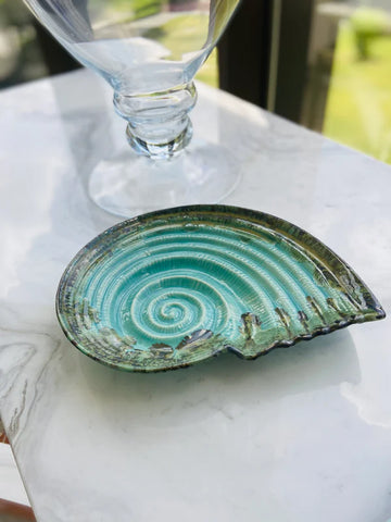 Elevate your dining experience with our stunning Shell Platter in Green with Grey Border! Expertly crafted with durable materials and featuring a beautiful green colour with a grey border, this shell platter is perfect for serving up your favourite seafood dishes . Whether you're hosting a dinner party or simply want to add some colour and style to your table, our Shell Platter is a must-have. With its unique design and sturdy construction, our Shell Platter in Green with Grey Border is sure to impress your guests. The refreshing green colour of the platter adds a touch of nature to your dining experience. Order now and bring a little bit of coastal charm to your home!