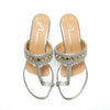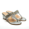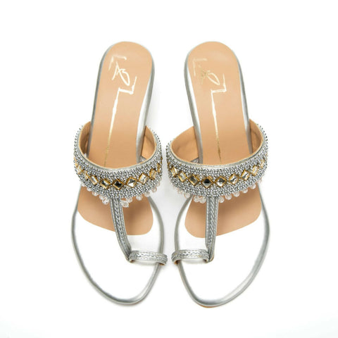 Featuring a pair of silver kolhapuri in faux leather base with embroidery. It has a faux leather underlining, gel cushioning, and 2.5 inch block heels.