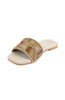 Crafted on an ivory raw silk base, these Slides shine with shades of light gold, dark gold, and silver cutdana. The geometric pattern is filled with gold cutdana, creating a radiant sheen. ‘Sunehri’ is your golden touch for every occasion, a symbol of elegance and grace. All our Slides are VEGAN – made in premium faux leather and super comfortable for wide feet! And double cushioned for that extra comfort.